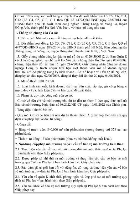 Giấy phép môi trường nhà máy 2 số 25/GPMT-BQL