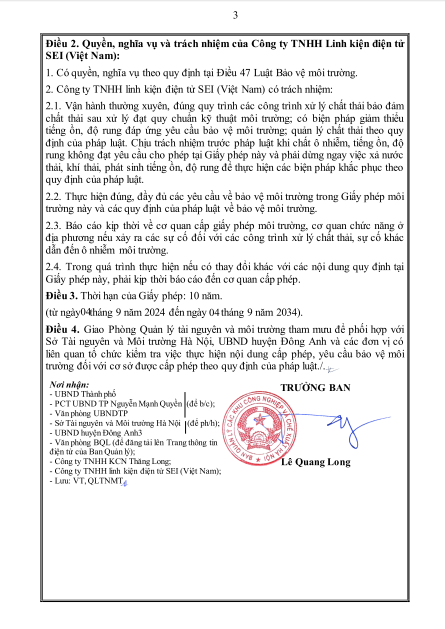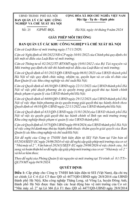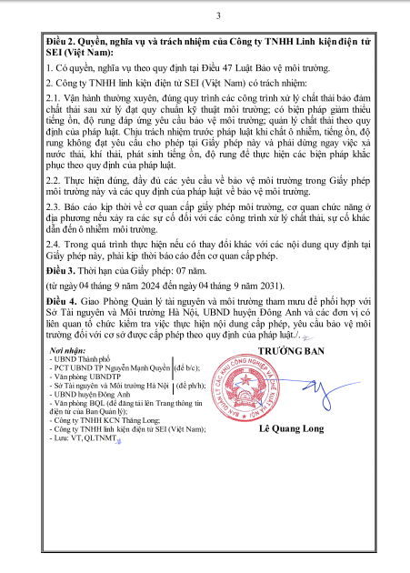 Giấy phép môi trường nhà máy 4 số 03/GPMT-BQL